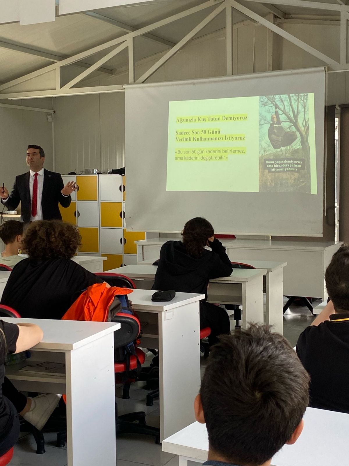 Aile ve Gençlik Merkezi Müdürü Kariyer Danışmanı Öğr. Gör. Ali BOZGEDİK ile kolejimizde "Son 50 Gün: Kazanmanın Şifresi" programımızı tamamladık. Kendilerine engin bilgilerini öğrencilerimiz ile paylaştığı için teşekkür ederiz.