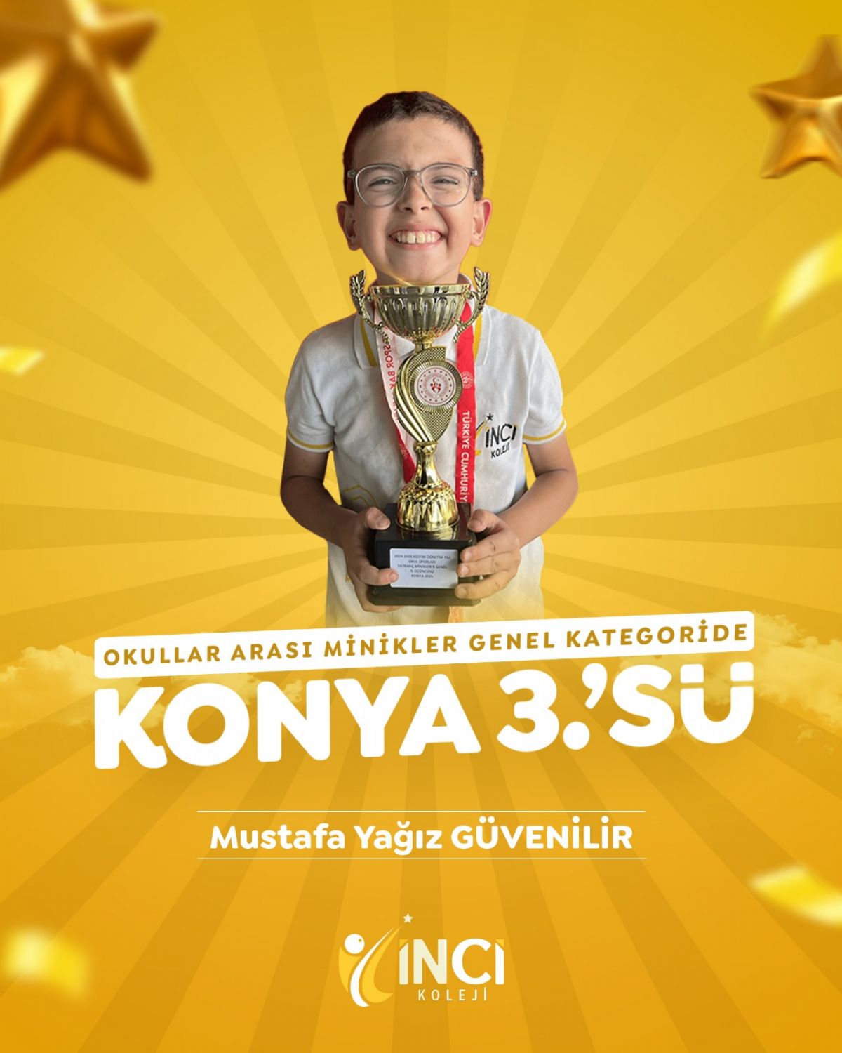 Okullar Arası Minikler Genel Kategoride Konya 3.'sü olan İncilerimizi tebrik ederiz. Onların katıldığı her yarışmada heyecanlanıyor, başarıları ile gurur duyuyoruz.